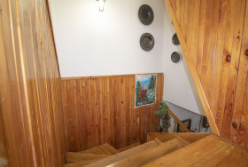 A lakótér tökéletesen megfelel a mai igényeknek, hiszen egy tágas, fényes nappali van a ház központjában, innen közelíthető meg a kert és az emelet is, ahol három külön nyíló hálószoba és egy fürdőszoba lett kialakítva. A szobák mérete és alakja jó, mindegyik jól berendezhető, beépített szekrénnyel rendelkezik.